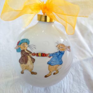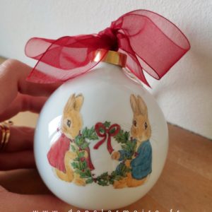 Elégante boule de Noël en porcelaine peinte à la main, personnalisable sur le côté opposé au motif.
