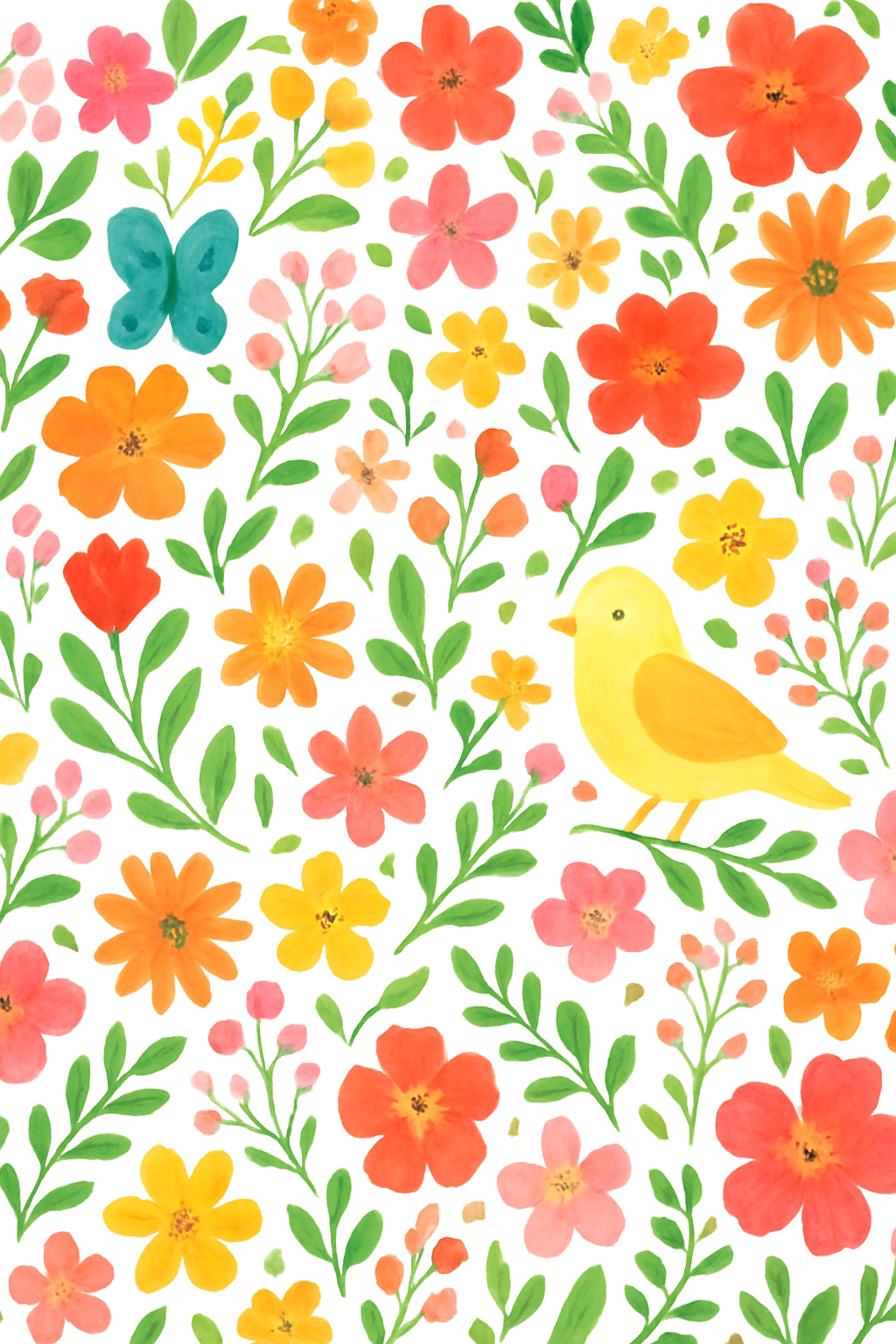 face 1 : motif fleuri avec oiseau