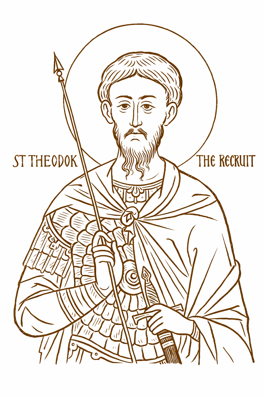 -Face 1 : dessin de Saint Théodore – texte en français sur l’image : « Saint Théodore – le Conscrit »