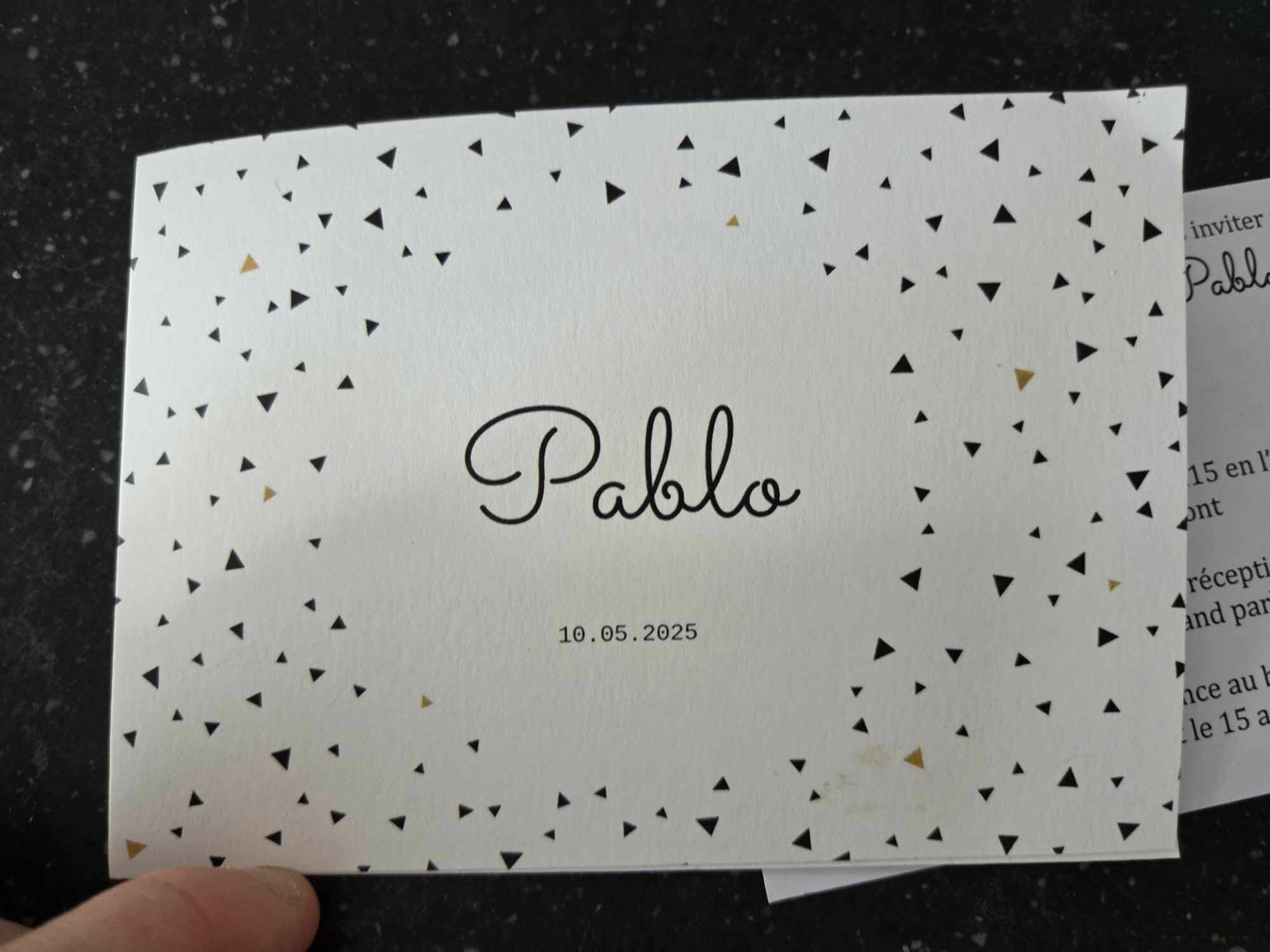 Face 2 : texte « Pablo » + reprise motif – couleur du texte : Noir
