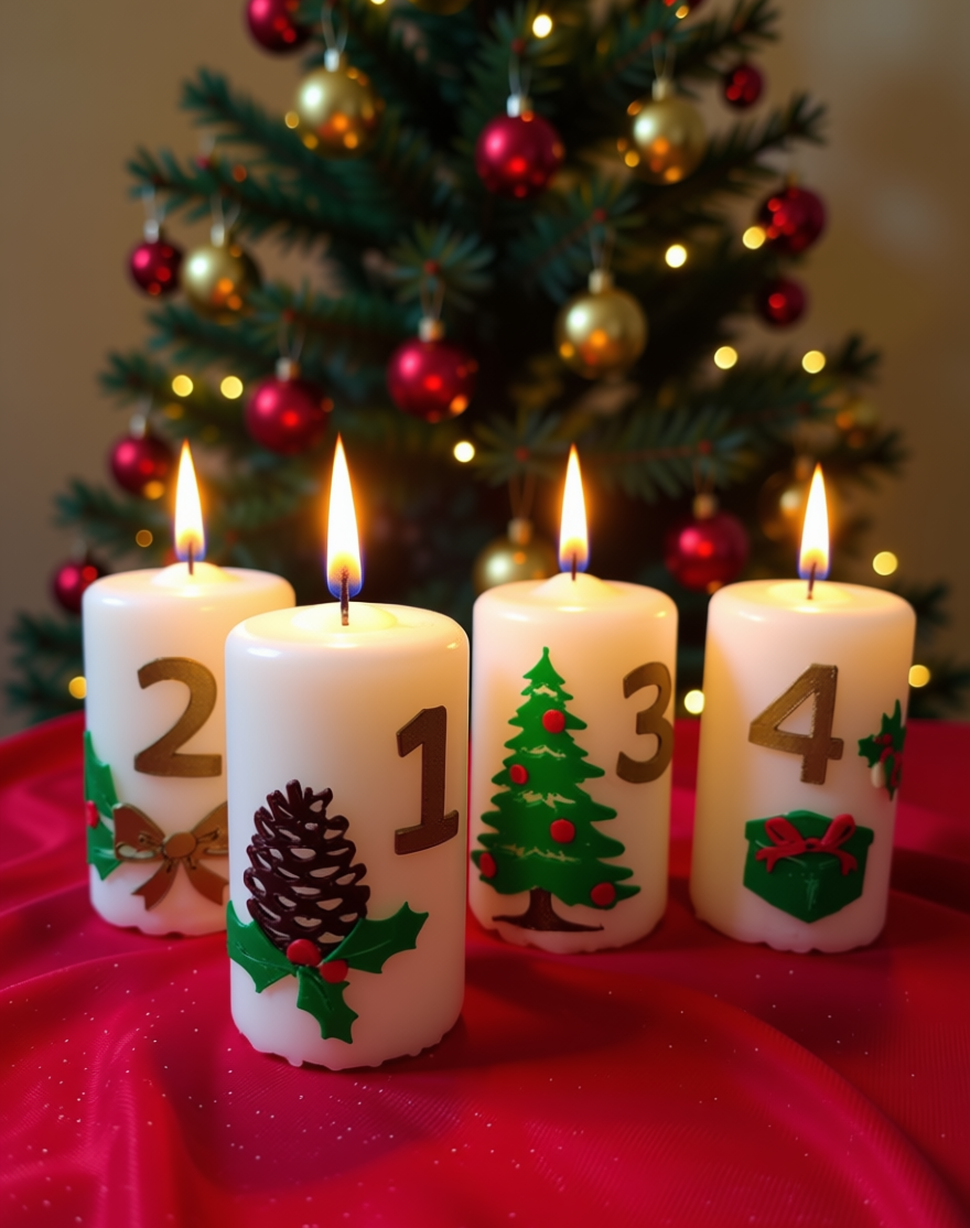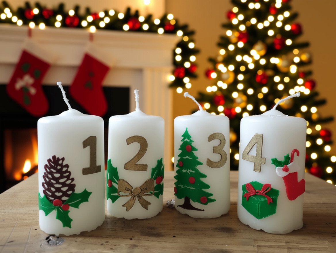 À la fin de votre activité, vous obtenez un ensemble complet de bougies décorées, uniques, chaleureuses et prêtes à illuminer votre couronne pendant les quatre dimanches de l’attente de Noël.