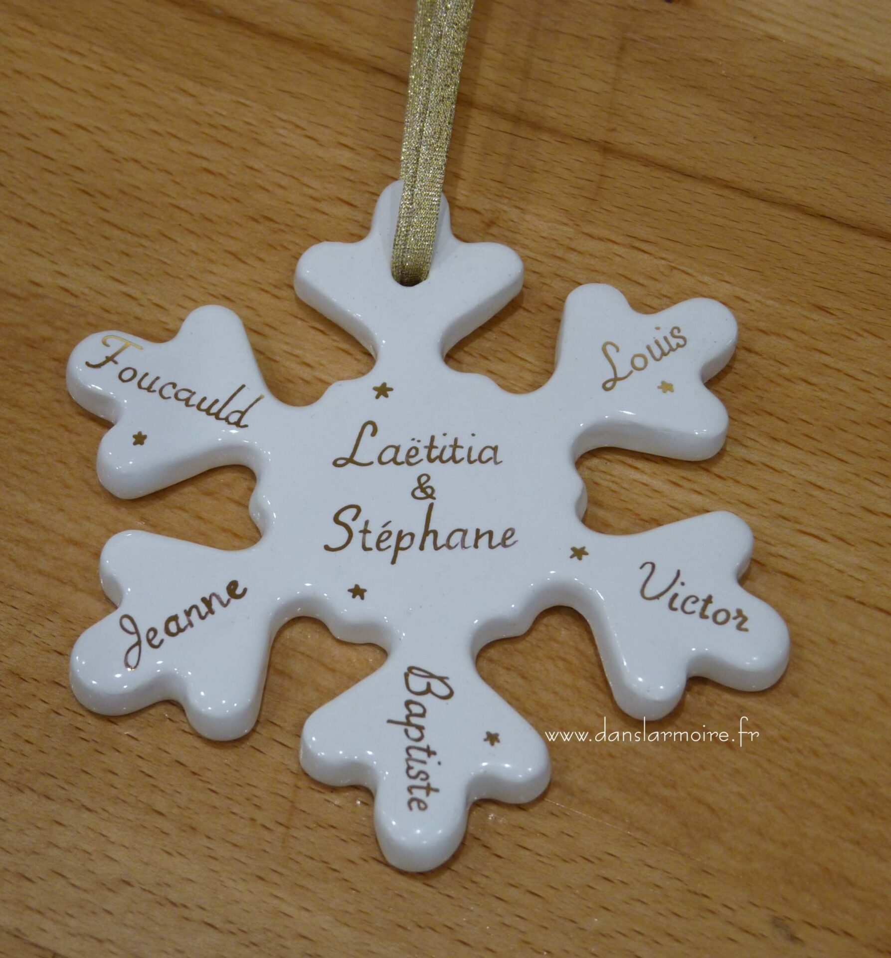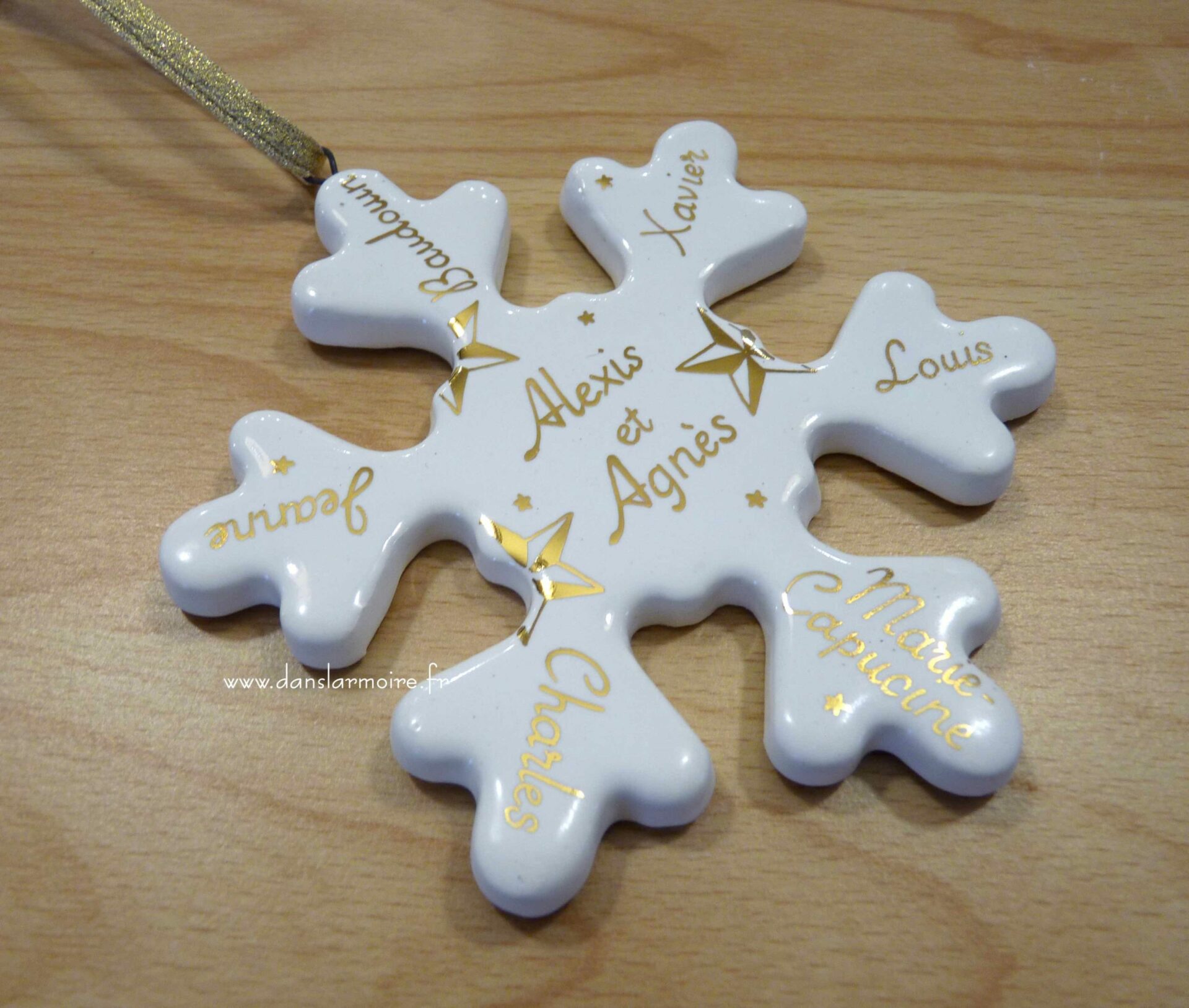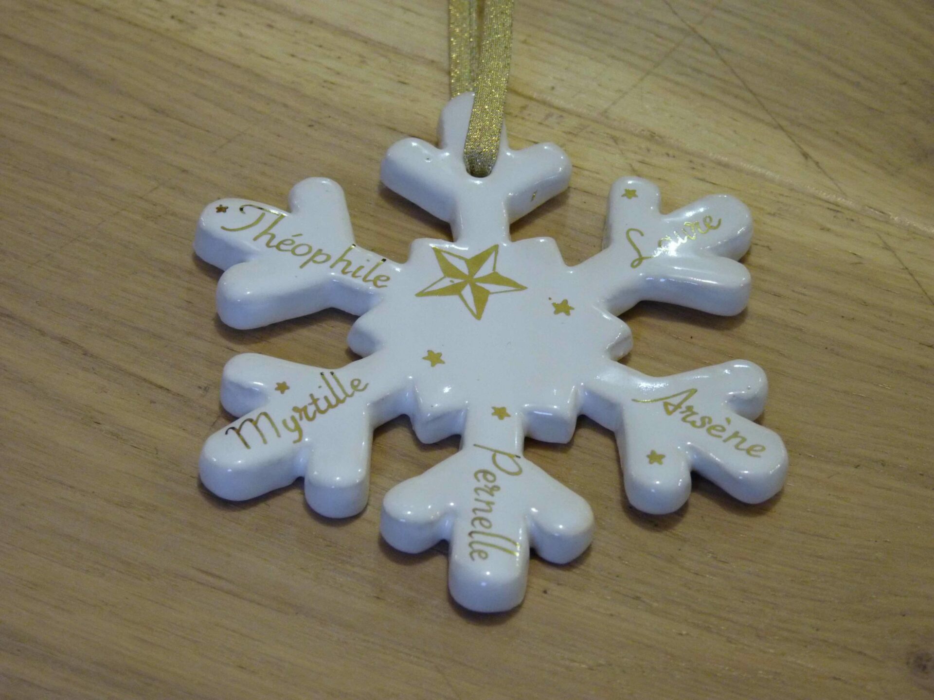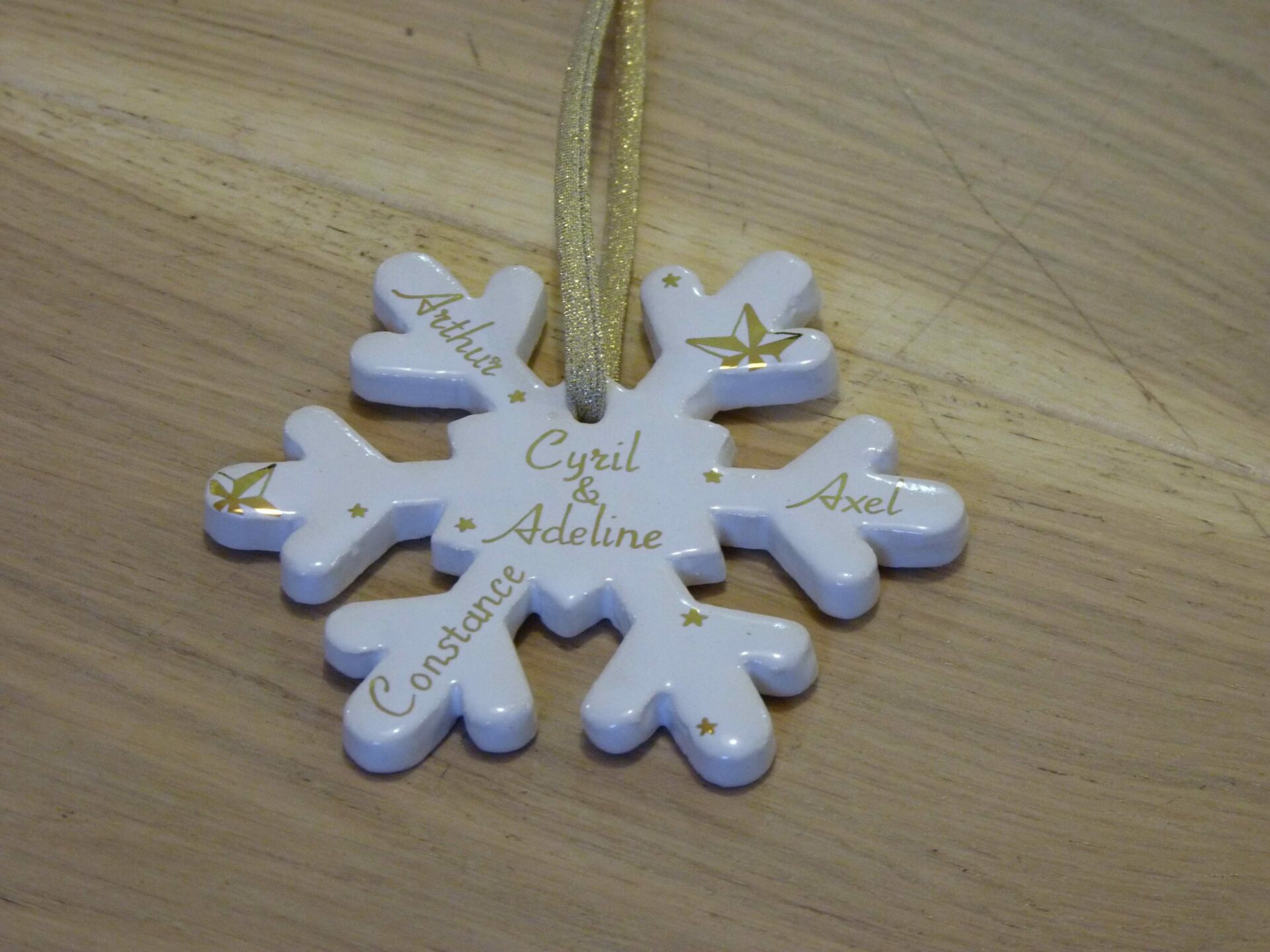 Ces flocons sont réalisés entièrement à l’atelier : conception et réalisation de l’emporte pièce, façonnage, émaillage et personnalisation de la pièce.